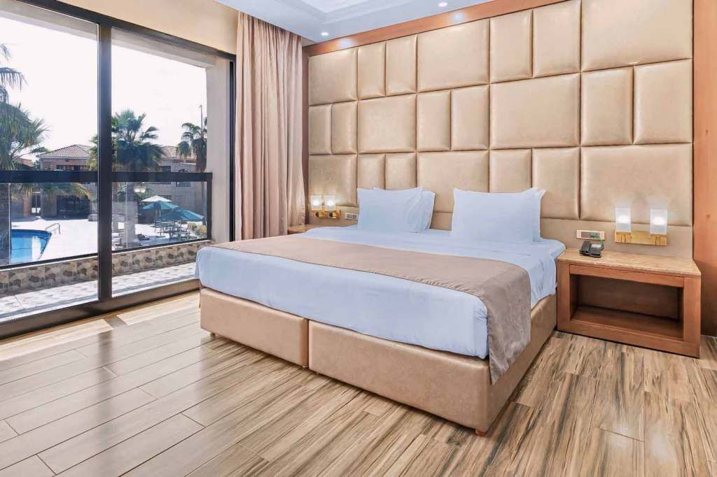 Suite room with pool view featuring a balcony / Patio. This air-conditioned room has a king size bed with a smart TV and mini-bar. The bathroom is fitted with shower and free toiletries.